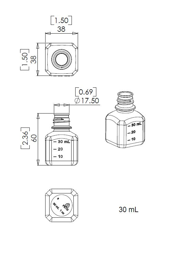 30ml PETG Media Bottle, Standard Cap w/Plastic Shrink Seal, Sterile