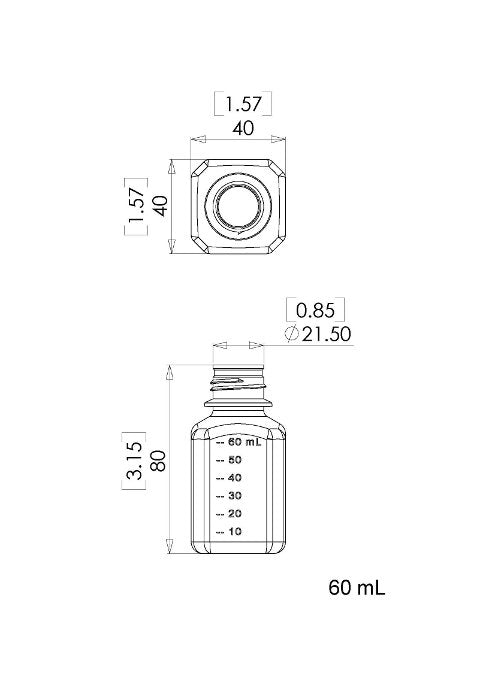 60ml Square Polycarbonate Bottle, Standard Cap