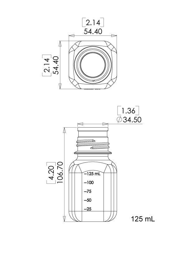 TriForest BPC0125, 125ml Square Polycarbonate Bottle, Standard Cap