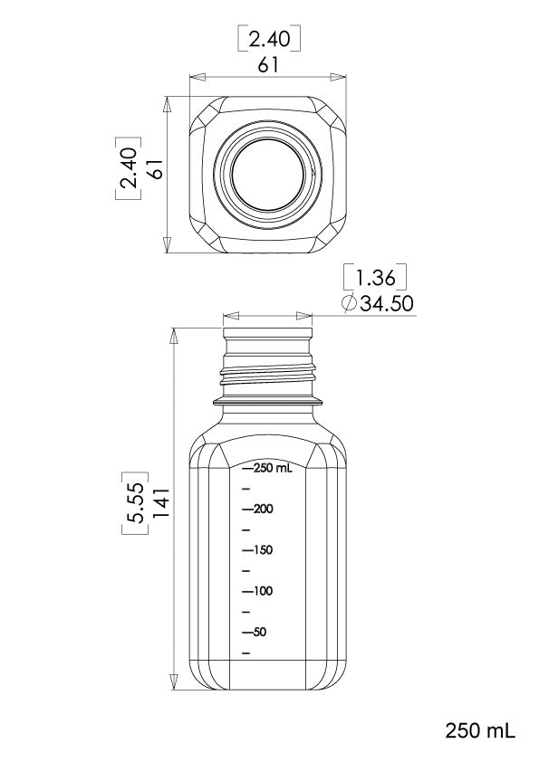 250ml Square Polycarbonate Bottle, Standard Cap