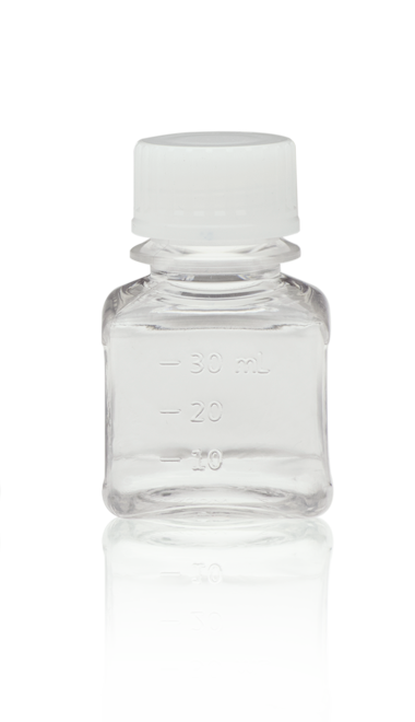 30ml PETG Square Media Bottle, Sterile, Medical Grade