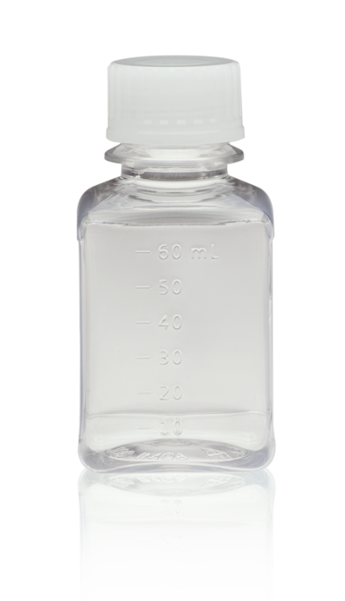 60ml PETG Square Media Bottle, Sterile, Medical Grade