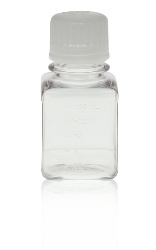 125ml PETG Square Media Bottle, Sterile, Medical Grade