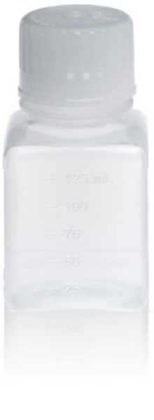 125ml Polypropylene (PP) Square Media Bottle, Standard Cap, Non-Sterile