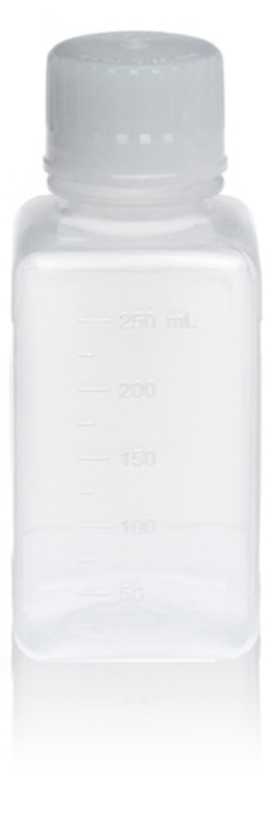 250ml Polypropylene (PP) Square Media Bottle, Standard Cap, Non-Sterile