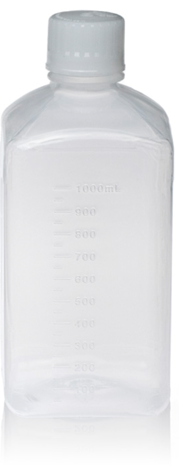 1000ml Polypropylene (PP) Square Media Bottle, Standard Cap, Non-Sterile
