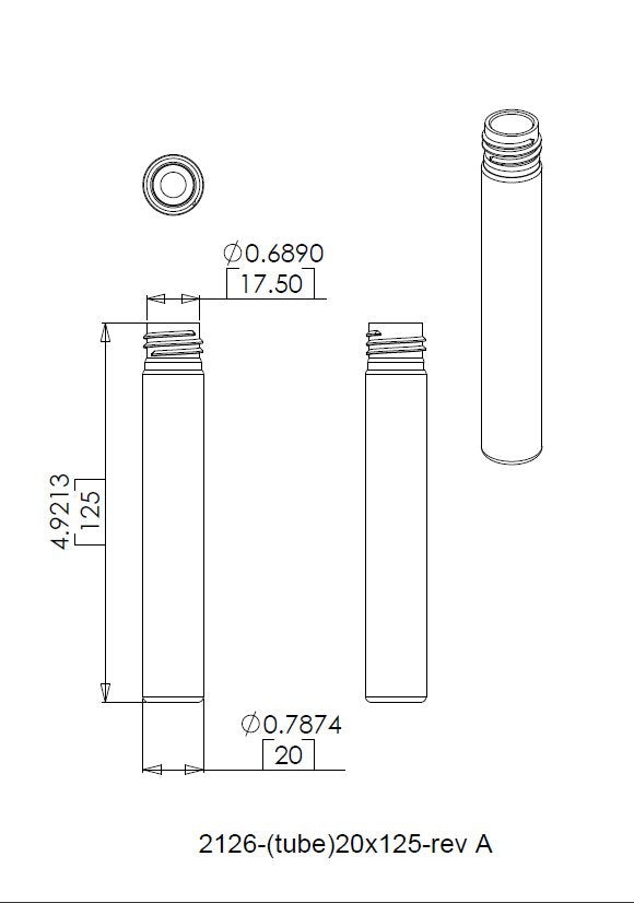 20x125mm Polycarbonate Culture Tube, Standard Cap